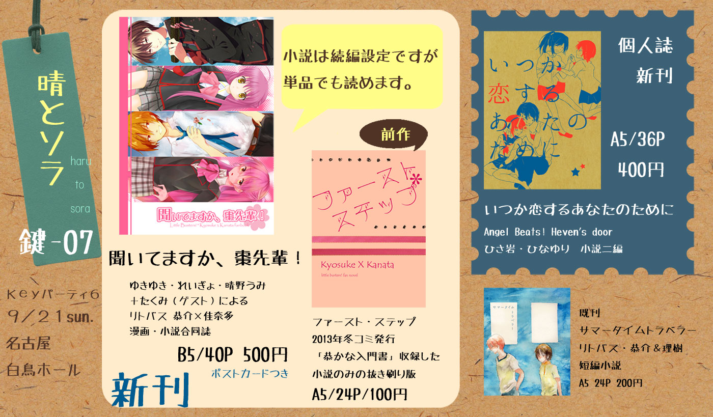★新刊「聞いてますか、棗先輩!」リトバス 恭介×佳奈多(合同誌)